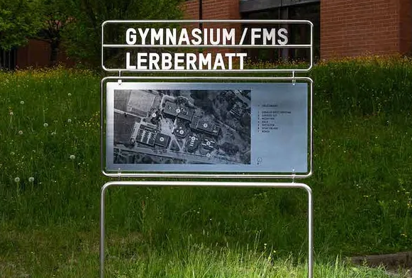 名稱導向性導向系統,一般設置在教學樓.建筑場館,主干道等重要節點位置,人們在校園空間內有可能會有行程的改變,這就可以讓行路人快速了解所處位置與周圍校園環境的關系。