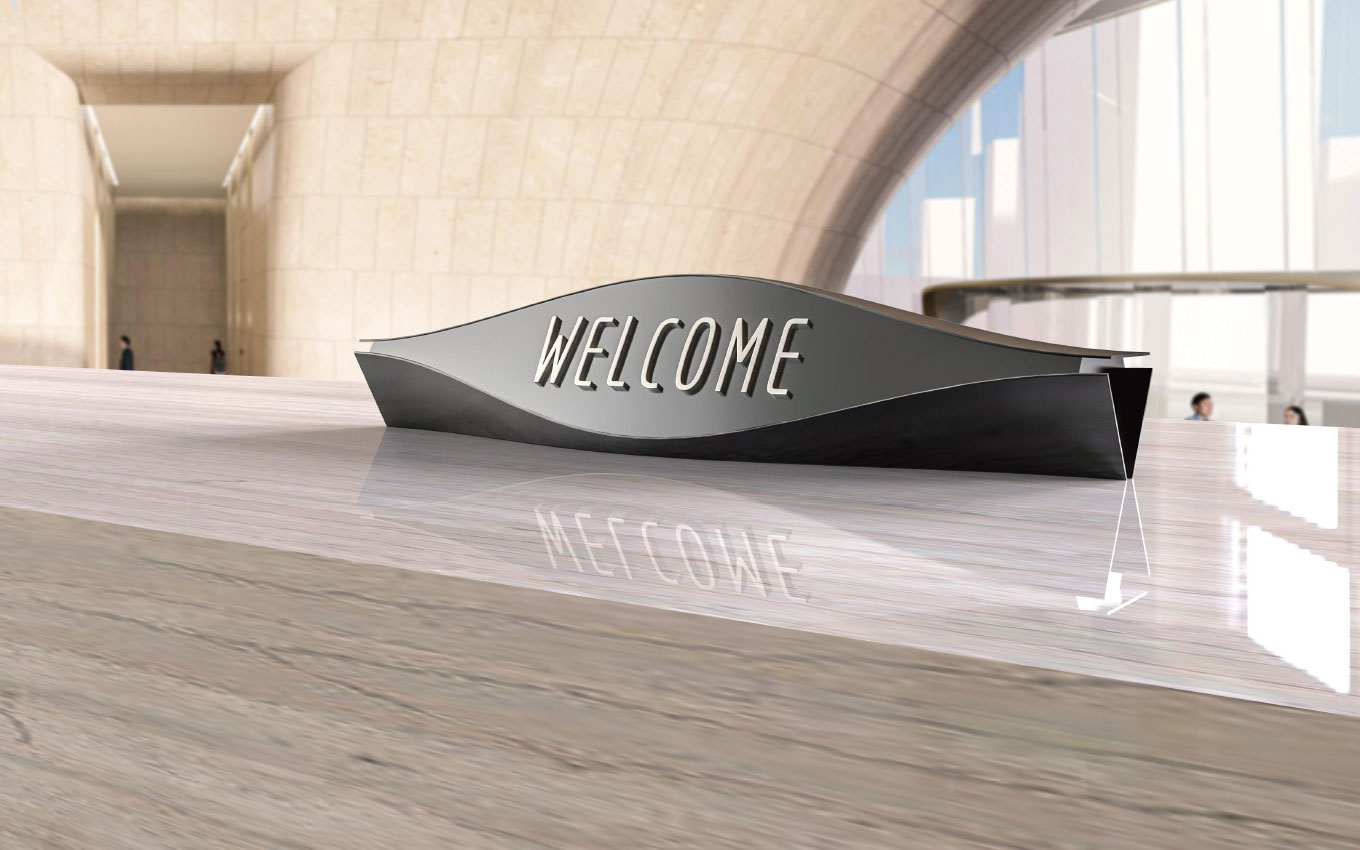 未來流動性的外立面設計,在售樓部標識設計中,也延伸了視感流動性的外立面特點,把杭州望朝中心導視設計用現代科技的曲線形式進行構思,以切面的造型,加上金屬的品質感覺。在杭州2022年亞運會的主辦城市,借勢實現品牌文化的傳播,以國際化的視覺去呈現,人和時代CRT杭州標識設計公司以超前視覺感覺、以建筑曲線作為靈感覺,不銹鋼疊片組成企業元素圖形,滲透著光影掠過天際,漸消面園弧切線,外星科技感覺流線造型。
