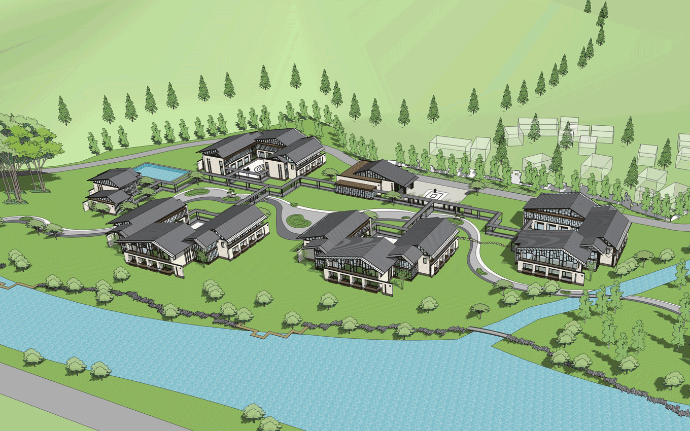 牯牛降標識系統設計和建筑的規劃創意與效果圖。