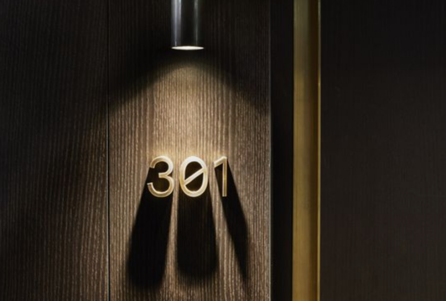 西安導視設計公司的酒店客房門牌號投影設計,在我們酒店客房房號當中,我們西安的導視設計公司以上面燈光投影的形式來體現出立體字的房號指引,以制造出空間的環境感。